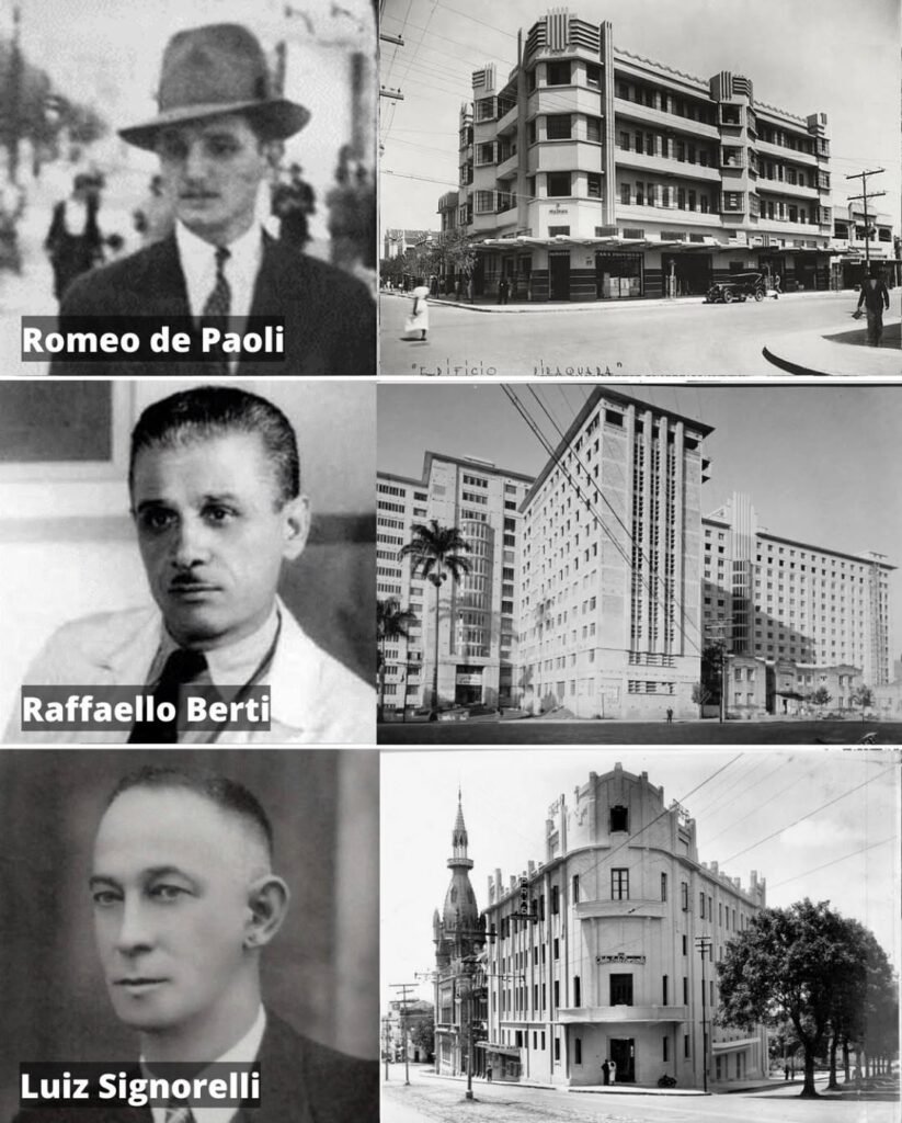 Muitos dos mais importantes arquitetos do estilo Art Déco em BH, nas décadas de 1930 e 1940, foram italianos e ítalo-descententes como Raphaello Berti, Luiz Signorelli e Romeo de Paoli