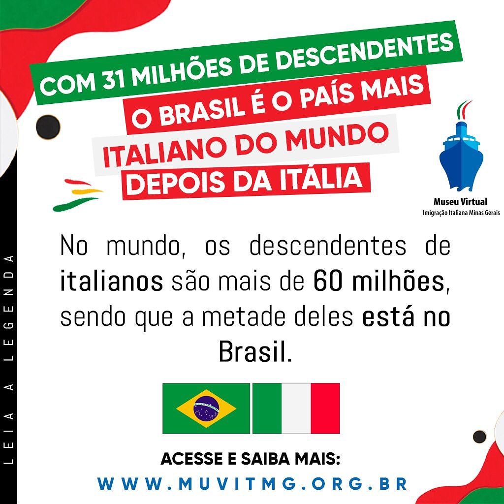 Com 31 milhões de pessoas descendentes, o Brasil desponta como o maior país com raízes italianas no mundo. O dado consta no Rapporto Italiani nel Mondo, de 2023, realizado pela Fondazione Migrantes.