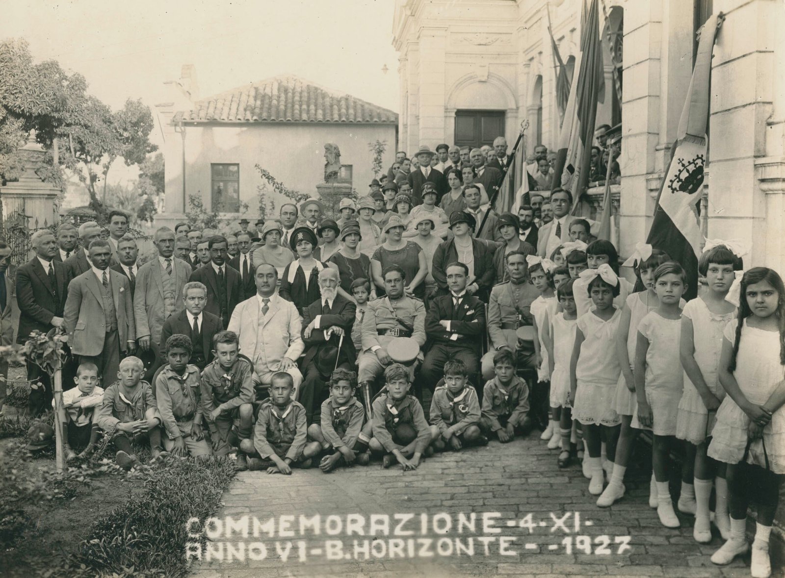 Registro fotográfico de comemoração de seis anos, possivelmente vinculada à fundação do Palestra Itália, com a presença do cônsul Giovanni Maria Nasi, em 4 de novembro de 1927. Fotografia de autoria de Igino Bonfioli, doada por Anísio Ciscotto.