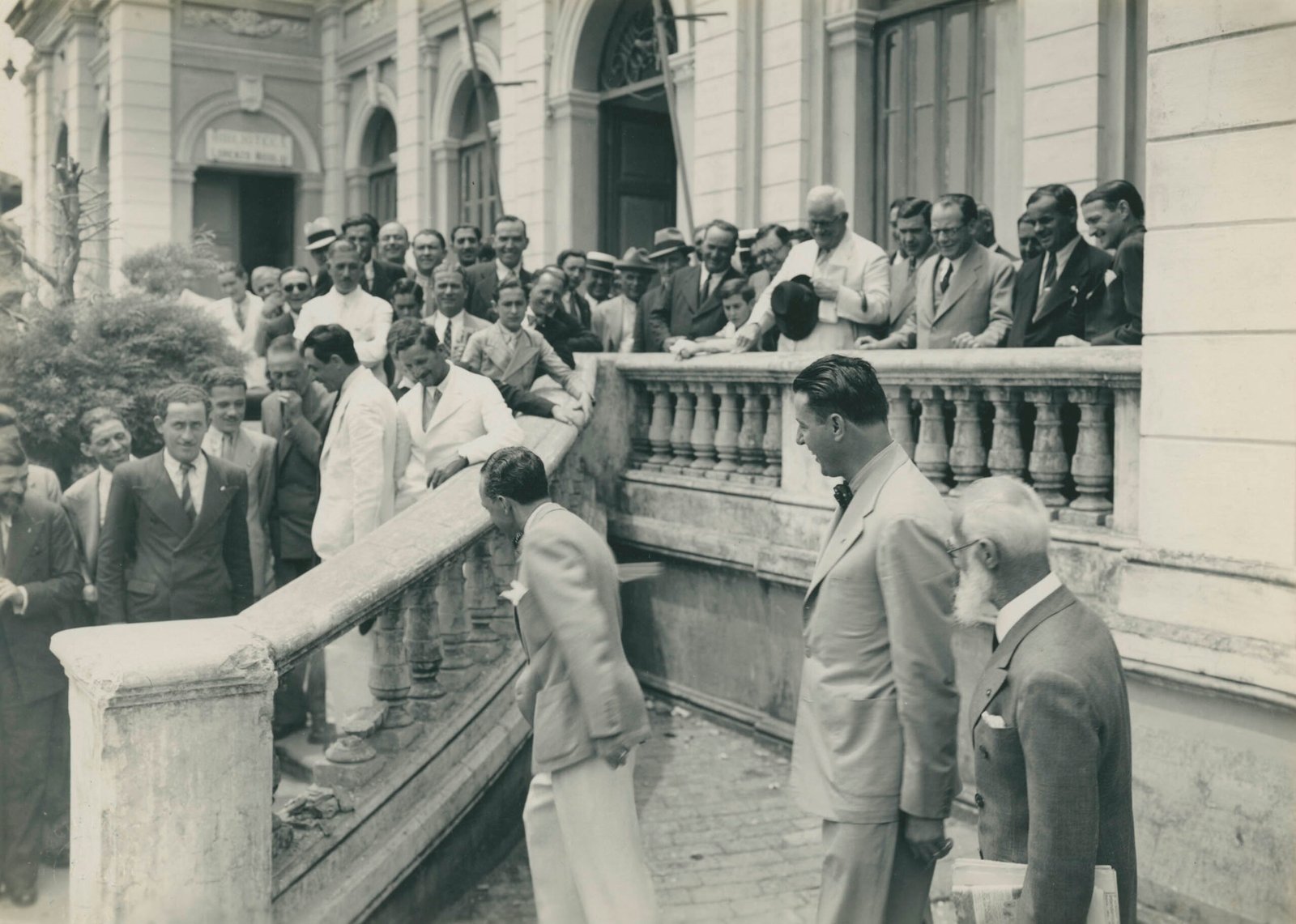 Registro fotográfico de evento realizado, provavelmente na Catedral da Boa Viagem, com a presença do cônsul Tullio Grazioli, em 1937. Fotografia de autoria de Igino Bonfioli, doada por Anísio Ciscotto.