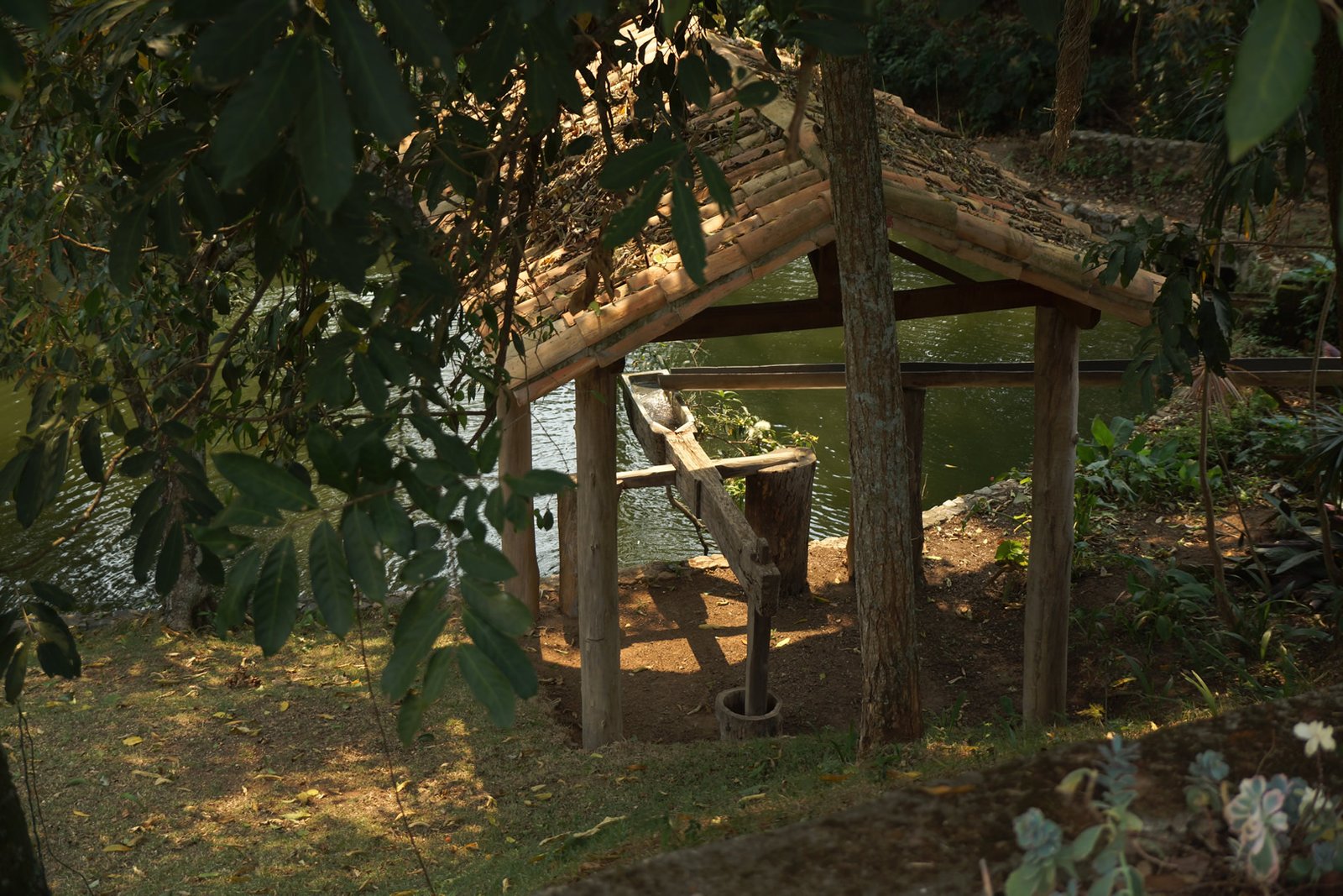 • Monjolo coberto com um rancho com telhas