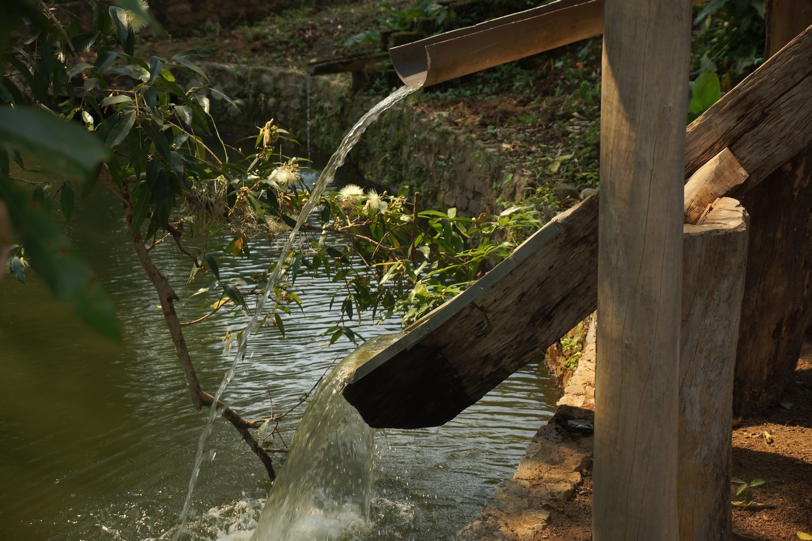 Parte de trás de um monjolo destinada a capitar a água canalizada
