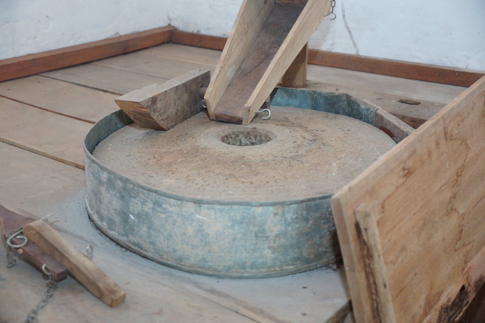 Partes dos mecanismos de um moinho de fubá: mó de cima