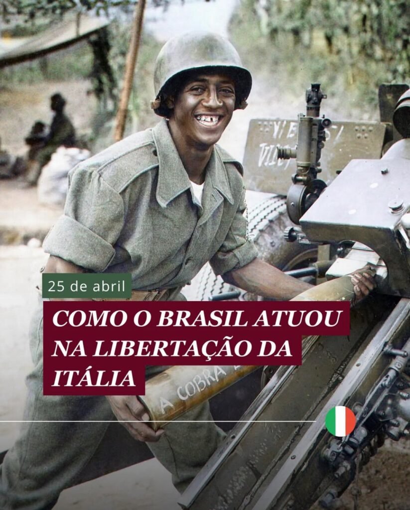A libertação da Itália foi um processo que contou com a ajuda dos pracinhas brasileiros, que haviam chegado ao país quase 1 ano antes. No total, o Brasil enviou cerca de 25 mil soldados, além de 42 pilotos e de 400 profissionais da FAB, a Força Aérea Brasileira.