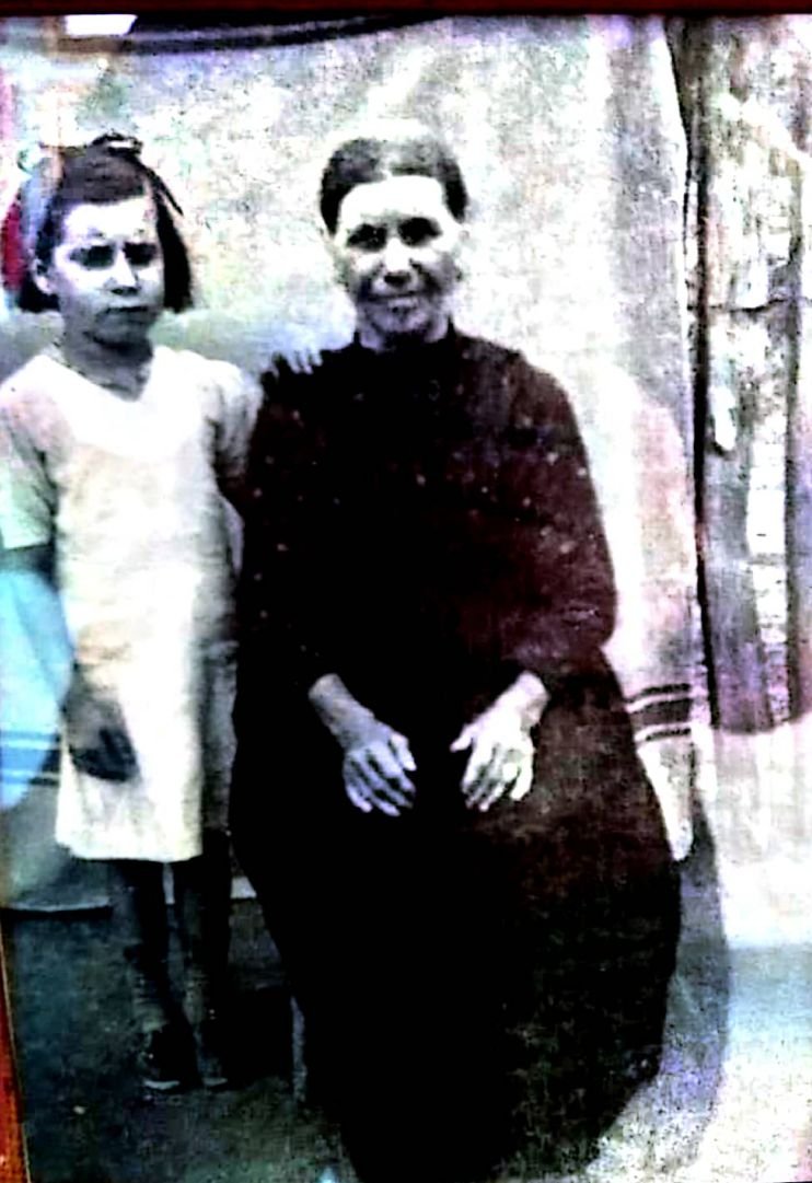 Zélia Piva, filha de Ferdinando Piva e Genoveva Dall’Ava, retratada com a avó materna Teresa Cancian. A menina encontra-se em pé, posicionada à direita da avó, que está sentada. Zélia apresenta cabelo curto, adornado com laço de fita. Teresa Cancian traja vestido longo em tonalidade escura.