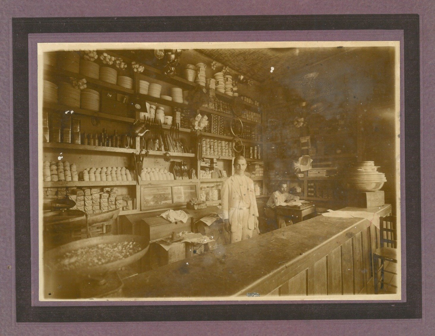 Referência:[ARMAZÉM de Candido Landri (1918)]. Alfenas (MG), 1918. 1 fotografia, p/b. Coleção particular de Cícero Bueno Landri.