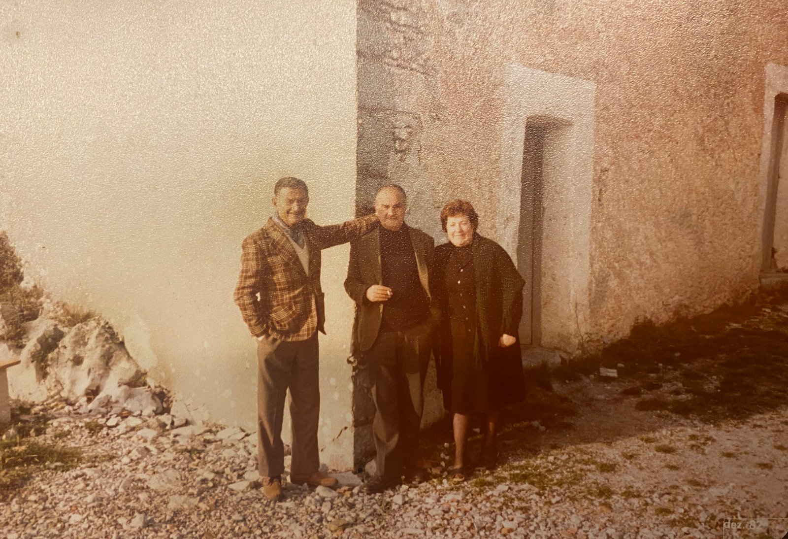 Mario Lombardi com o irmão Ennio, a cunhada Ida, em Monte Carmelo, Buonabitacolo, durante a visita aos parentes em 1982.