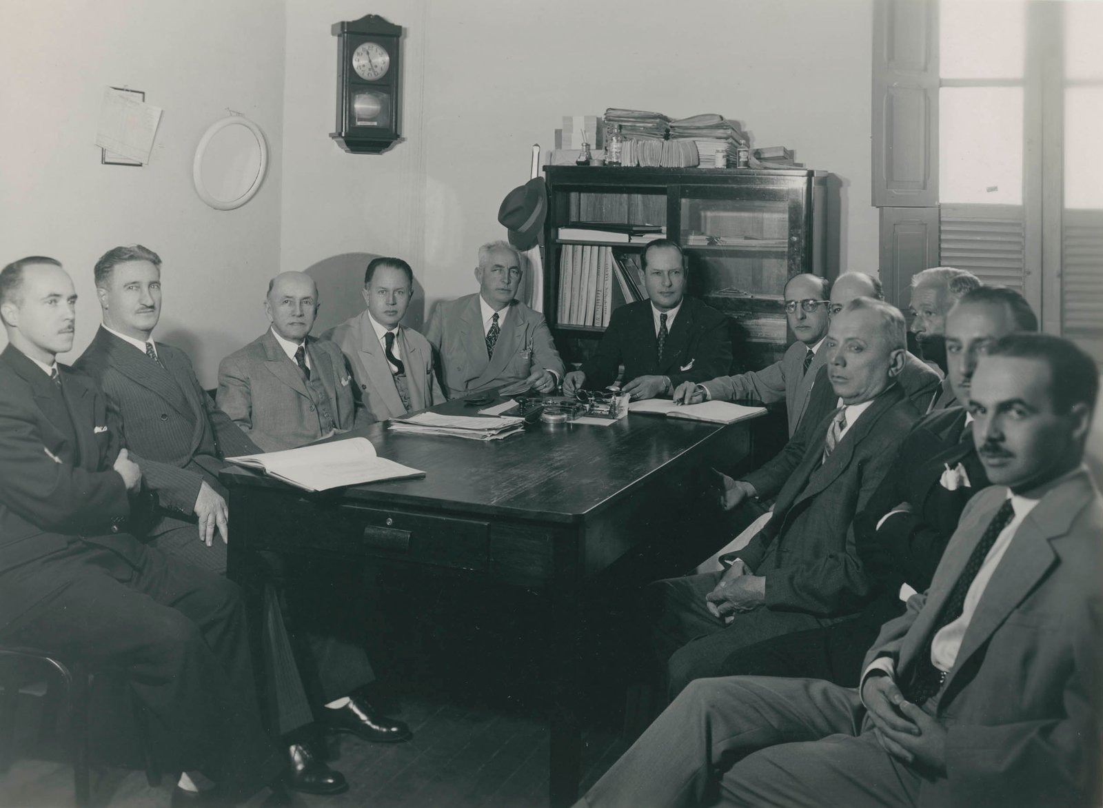 Registro fotográfico de reunião de expoentes italianos realizada na Casa d’Italia, então sede do Consulado da Itália, localizada na Rua Tamoios, em Belo Horizonte, na década de 1930. Fotografia de autoria de Igino Bonfioli, doada por Anísio Ciscotto.
